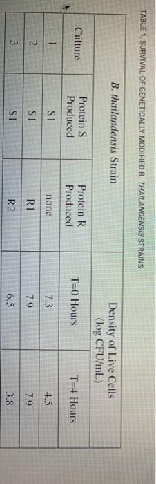 Solved Table 1 Survival Of Genetically Modified B Chegg Com